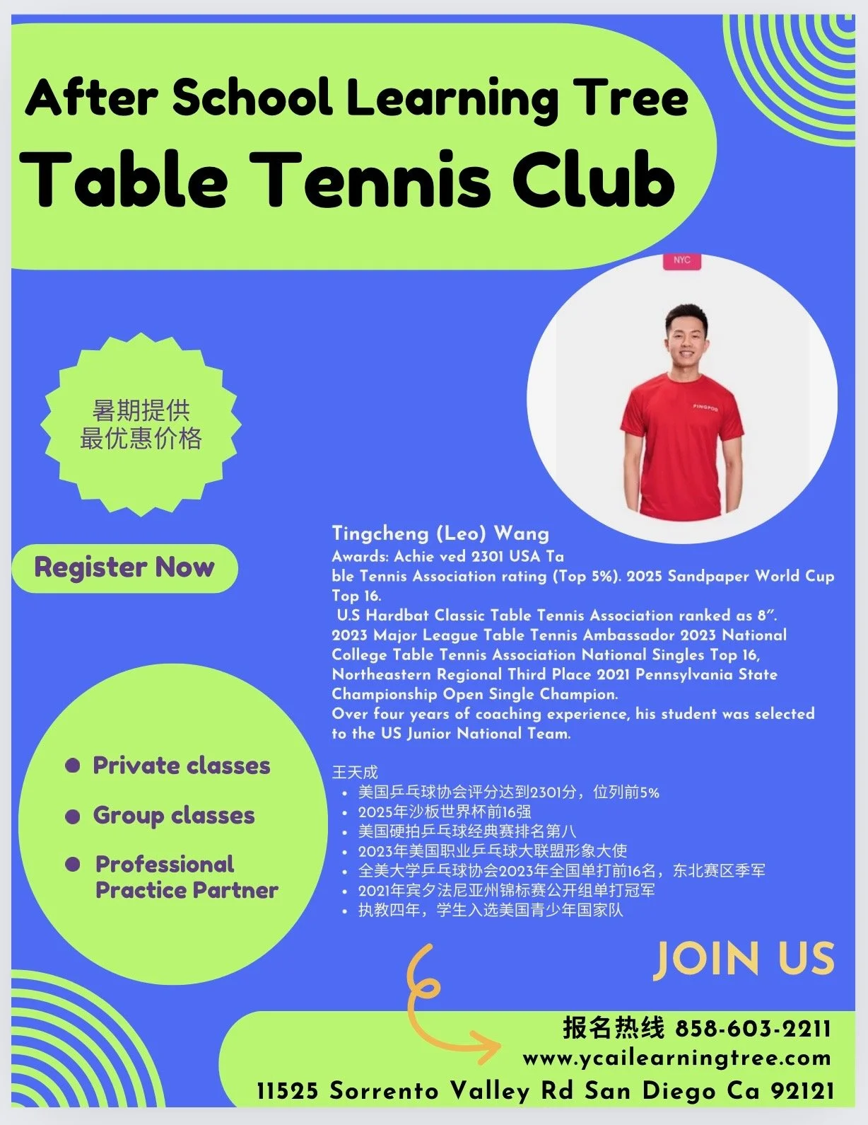 We are excited to announce that Tingcheng (Leo) Wang will be joining ASLT Table Tennis for the summer!
